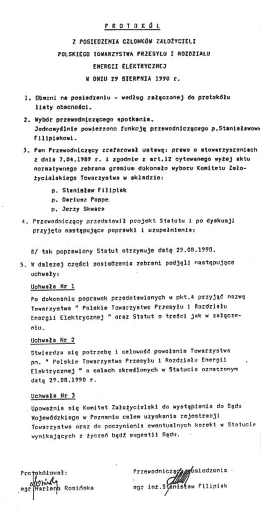 Protokół z posiedzenia Członków Założycieli PTPiREE
